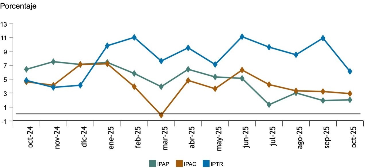 Los precios suben: IPAP +2,0%, IPAC +2,9% e IPTR +6,1% respecto a octubre de 2024.